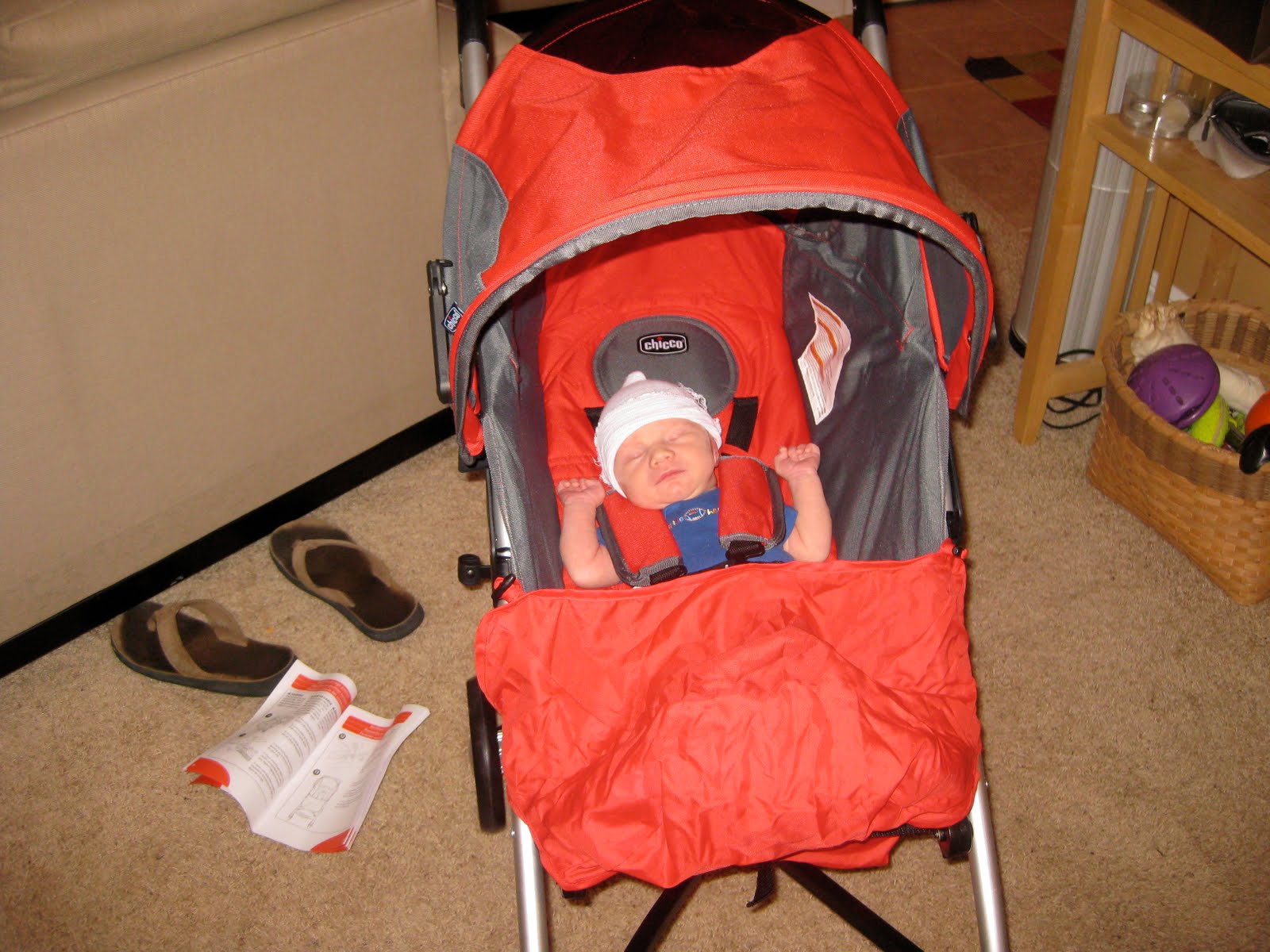 We took our first family walk, and everyone did great. Preston seemed to be just fine keeping pace with a stroller, and Oliver, well, he got so excited about his first walk that he promptly slept through the whole thing.
